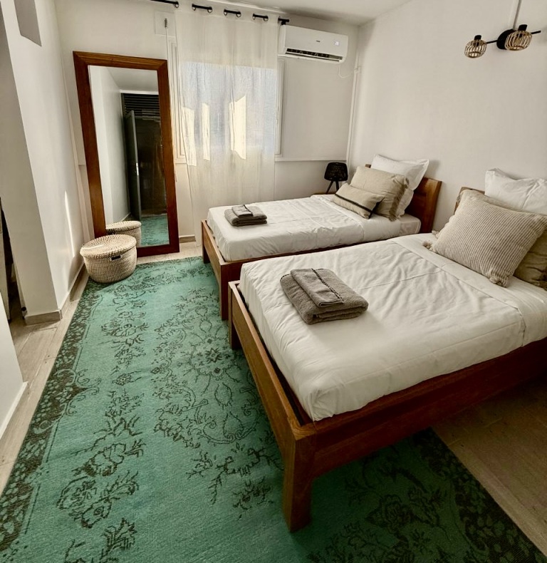 Großes, klimatisiertes Apartment für 6 Personen im Zentrum von Pointe-Noire, mit 3 Schlafzimmern, ausgestatteter Küche, Waschmaschine und Geschirrspüler. 10 Minuten zu Fuß zum Strand.